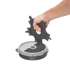 Sa goulotte extra-large permet de traiter des légumes volumineux (chou, céleri, salade…) ou jusqu’à 6 tomates à la fois. La goulotte cylindrique assure une coupe régulière des légumes longs et fragiles. Le coupe-légumes comprend deux goulottes (demi-lune et cylindrique), une cuve inox de 5,9 L, un couteau lisse fond de cuve et un couvercle démontable pour un nettoyage facile. Livré sans disque, il est compatible avec plus de 50 disques pour émincer, râper, julienner, couper en bâtonnets, macédoine, frites ou même presser les purées.