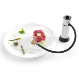Ce Pistolet fumoir est doté d'un boitier en aluminium. L'appareil peut être utilisé avec fruits et légumes fragiles sans modifier leur structure ou leur température. Idéal pour les professionnels de la restauration, il peut également être utilisé avec du thé ou bien des herbes et des plantes aromatiques. Il fonctionne comme un refroidisseur et baisse la température de la fumée avant de l’expulser.