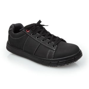 Ces Baskets de Sécurité Noires en cuir de la marque Slipbuster sont dotées de semelles anti-dérapantes. Idéales pour les environnements professionnels, elles sont proposées en taille 45.