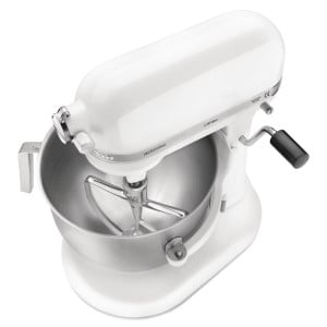 Avec sa conception entièrement métallique et son moteur puissant mais silencieux, le Batteur professionnel KitchenAid blanc est fiable, durable et efficace. Le mouvement souple et silencieux de grandes quantités et l'action de mélange garantit que toutes les zones du bol soient atteintes.