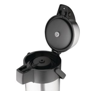 Ce Pichet À Pompe d'une capacité de 2,5 litres en acier inoxydable maintiendra la température idéale des boissons chaudes ou froides plus longtemps. Le thé, le café et l'eau sont maintenus chauds jusqu'à quatre heures avant que le pichet ne doive être rempli à nouveau, ce qui réduit les déchets.