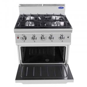 Le piano de cuisson est équipé de puissants brûleurs traités Dacromet, de 4 feux vifs avec allumage piezo-électrique et sécurité par thermocouple. Le four à gaz est statique et sa température oscille de 100 °C à 300 °C. Il est par ailleurs doté de 3 niveaux et possède une grille 650 x 530 mm. Les dimensions intérieures four sont de L 695 x P 560 x H 320 mm .