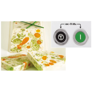 Cutter vertical R-Mix à vitesse variable de 300 à 3000 tr/min et vitesse variable en rotation inverse de 60 à 500 tr/min.