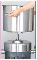 Couvercle • Couvercle en polycarbonate transparent pour un meilleur contrôle des préparations en cours de réalisation. • Couvercle étanche ne nécessitant qu’un seul mouvement pour sa fixation. • Basculement du couvercle étudié de façon à éviter l’écoulement de liquide sur le bloc moteur. • Ouverture centrale du couvercle prévue pour l’adjonction de liquides ou d’ingrédients en cours de fabrication. • Couvercle et joint démontables en un tour de main pour un nettoyage en profondeur. |