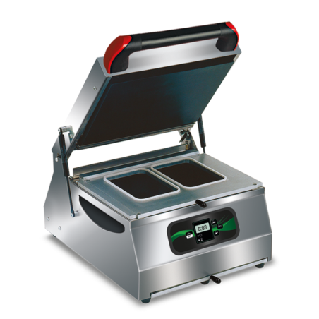 Cette Thermoscelleuse Manuelle est idéale pour les professionnels de la restauration et les petits établissements. Grâce à elle, scellez vos barquettes pour améliorer la conservation de vos produits ! Les barquettes compatibles ne doivent pas excéder 265 x 325 mm.