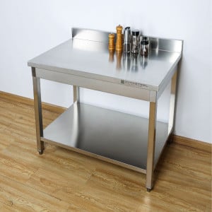 Table Inox avec Dosseret et Étagère
