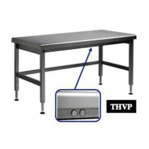 Elle est pourvue de piètements en tube inox soudés de 40 x 40 mm. Ses quatre roulettes (dont deux avec freins), quant à elle, facilitent le déplacement de la table. Enfin, elle se branche sur secteur pour fonctionner.