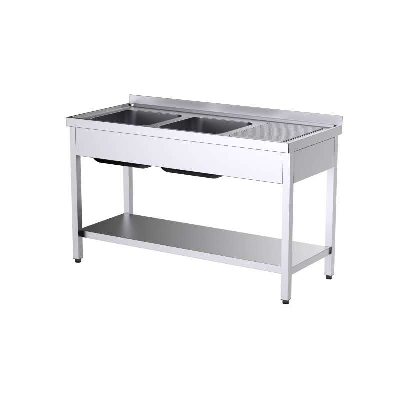 Plonge 1 Bac et Egouttoir à Droite avec Etagère Pleine - P 700 - L 1500 mm