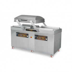 Cette Machine Sous-Vide à Cloche SUPERMEGA avec Pré-Installation Gaz Inerte et Pompe Busch est spécialement conçue pour une utilisation industrielle. Elle possède deux cloches pour doubler son rendement ainsi que quatre barres de soudure de 800 mm. Ces dernières permettent de souder de grands sacs de cuisson et sont démontables pour faciliter leur nettoyage. Idéale pour les professionnels de la restauration, cette machine professionnelle dispose d'une puissance allant de 100 à 120 m3/h.