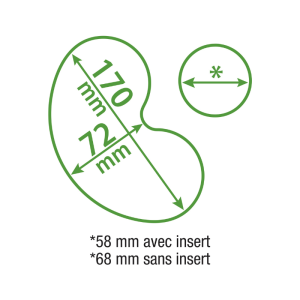 Précision Goulotte cylindrique Ø 69 mm pour la coupe des légumes longs équipée d?un insert de maintien pour guider le légume ou le fruit pendant la coupe. |