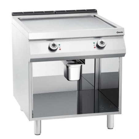 Cette Plaque à snacker Professionnelle électrique ou gaz de la série 900 de la marque Bartscher est dotée d'une plaque en acier inoxydable lisse.