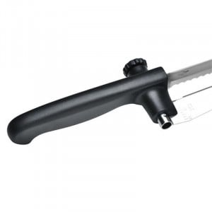 Ce Couteau à Trancher Réglable est idéal pour les professionnels de la restauration. Efficace, il vous permet de réaliser des tranches régulières de pain, de saucisson, de viande ou encore de fromage. Réglable, il est muni d'une lame pouvant mesurer de 0,5 à 2,7 cm. De plus, cet ustensile de cuisine est pourvu d'une lame en acier inoxydable 18/0 et d'un manche en matière plastique. Il est donc à la fois solide et durable.