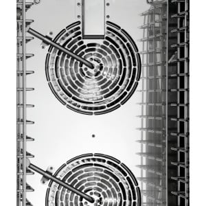 Il a une plage de température de 50°C à 300°C et dispose des fonctions suivantes : air ventilé, cuisson à la vapeur, cuisson combinée à la vapeur, cuisson à basse température, cuisson delta-T, inversion de la rotation du ventilateur et production de vapeur par injection directe.