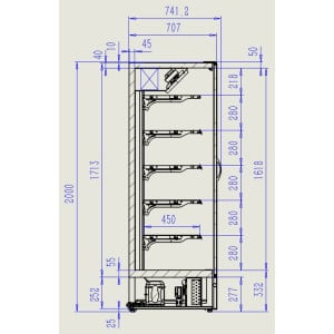 La couleur noire de l'armoire ainsi que son design épuré permettent une intégration harmonieuse dans tout type de décor de cuisine professionnelle. Munie de deux portes pleines, l'appareil assure une isolation optimale, avec une épaisseur de l'isolation de 40 mm et un dégivrage automatique, ce qui réduit considérablement la nécessité d'entretien. La puissance de 550 W et une alimentation de 230 V facilitent son intégration dans des installations existantes sans nécessiter de modifications électriques lourdes.