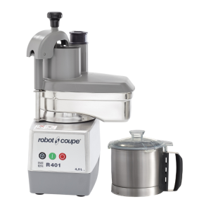 Le combiné cutter et coupe-légumes R 401 de la marque Robot-Coupe, un instrument essentiel pour les professionnels de la restauration souhaitant optimiser la préparation de leurs plats jusqu'à 100 couverts. Grâce à sa puissance de 700W et une vitesse unique de 1500 tours par minute, ce robot de cuisine garantit une efficacité remarquable dans diverses tâches culinaires.