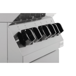 La série 700 est équipée d’un fourneau à gaz avec des dimensions généreuses pour les plaques et grilles (GN 2/1 : 650 x 530 mm), permettant ainsi de gérer efficacement les volumes importants de nourriture. Les chefs peuvent s’attendre à une chauffe rapide et une distribution uniforme de la chaleur, grâce à une puissance solide de 19000 watts et des brûleurs à gaz efficaces. Les températures sont ajustables de 100 à 300°C, offrant une grande flexibilité pour divers types de cuisson.