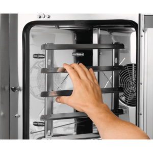 Avec une alimentation de 400 V et une impressionnante puissance de 4800 W, le four Silversteam accélère les temps de cuisson et réduit ceux de préchauffage, permettant ainsi de servir rapidement des plats de qualité. Sa capacité de 5 niveaux et les dimensions des plaques GN 2/3 (354 x 325 mm) favorisent une grande flexibilité et une capacité d’adaptation à divers besoins de cuisson, de la vapeur aux grillades grâce à l’option grill incluse.