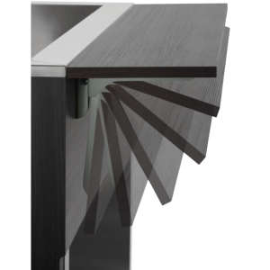 Le design en bois de couleur anthracite du chariot n'est pas seulement esthétique mais aussi pratique, incluant un éclairage intérieur LED qui valorise visuellement les plats et un système de protection efficace contre les postillons et la toux, garantissant une hygiène irréprochable. Le choix de matériaux robustes comme le bois assure une longévité exceptionnelle et une facilité de maintenance du chariot, ce qui en fait un investissement durable et rentable pour tous types d'établissements de restauration.