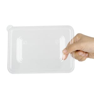 Couvercles PET Fiesta Recyclable pour Barquettes en Bagasse (Lot de 100) : ces couvercles durables et transparents sont conçus pour une identification rapide et facile des contenus, idéals pour des présentoirs attractifs. Leur conception en PET recyclable soutient les efforts environnementaux en facilitant le recyclage post-utilisation. Parfaits pour assurer une fermeture sécurisée des barquettes en bagasse de différentes tailles (500 ml à 1 000 ml), ils favorisent une présentation soignée tout en protégeant le contenu. Note importante : ces couvercles ne conviennent pas pour des utilisations avec des aliments chauds.
