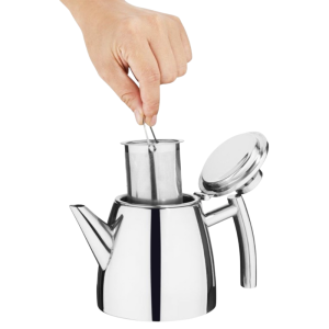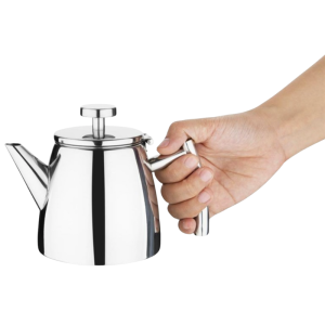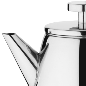 En termes de design et de durabilité, le choix de l'acier inoxydable poli pour la fabrication de cette théière n'est pas seulement une question d'esthétique. L'inox garantit une longévité exceptionnelle et une facilité de nettoyage, puisque la théière peut être aisément placée dans un lave-vaisselle, offrant ainsi un entretien sans effort et rapide, un atout considérable dans un environnement professionnel.
