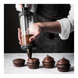Le Tube Pro, un piston à pression révolutionnaire est l'outil idéal pour tous les professionnels de la restauration cherchant à optimiser leurs techniques de garnissage et de décoration. Ce dispositif novateur offre la précision d’une seringue couplée à la polyvalence d’une poche à douille, permettant ainsi d'accomplir les tâches de remplissage, de garnissage et de décoration avec une facilité inégalée. Idéal pour manipuler des préparations épaisses telles que les crèmes, les mousses ou les pâtes à choux.