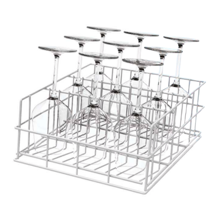 Avec des dimensions de 400 mm en longueur et en profondeur, ainsi qu'une hauteur de 180 mm, ce panier permet de manipuler aisément un grand nombre de verres à vin, tout en s'assurant de leur intégrité grâce à son arrangement incliné qui réduit le risque de chocs entre les verres. Ce dispositif est d'autant plus renforcé par la couleur blanche du panier, qui ajoute une visibilité accrue dans des environnements souvent chargés et mouvementés.