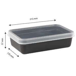 **Boîte Hermétique Rectangulaire avec Couvercle - 0,95 L - Lot de 10** Composées de plastique PP polypropylène, ces boîtes hermétiques noires mat de 0,95 litre garantissent une conservation optimale des saveurs et une protection contre les odeurs. Le couvercle transparent assure une visibilité parfaite et une étanchéité irréprochable, tout en permettant un empilage facile. Idéales pour la restauration, elles sont adaptées pour le click and collect et les services de livraison. Ces boîtes passent au lave-vaisselle et sont personnalisables avec un logo.