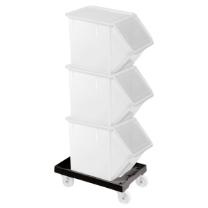 L'aspect pratique est renforcé par la capacité d'empilement et d'emboîtement du bac, même avec son couvercle, ce qui optimise l'espace de stockage sans sacrifier l'accès aux contenus. De plus, ce bac est compatible avec les socles rouleurs universels 600 x 400, ce qui simplifie considérablement la manutention et le déplacement des charges lourdes ou volumineuses.