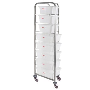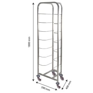 Avec ses dimensions généreuses (590 mm de longueur, 400 mm de profondeur, 1800 mm de hauteur) et un poids de 12 kg, elle offre un espace de rangement vertical efficace et est capable de supporter une charge jusqu'à 200 kg. Les chefs et les professionnels de la restauration apprécieront sa capacité à optimiser l'espace tout en garantissant un accès facile et rapide aux bacs à diviseuse.