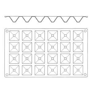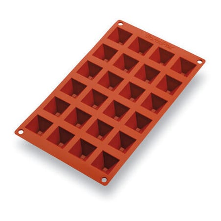 Moule à Pyramide Silicone - 24 Empreintes - 35 x 35 mm, fabriqué en silicone résistant et anti-adhésif. Passage au lave-vaisselle et au four possible. Démoulage délicat et rapide grâce à sa matière souple. Dimensions : longueur 300mm, profondeur 176mm, hauteur 20mm.