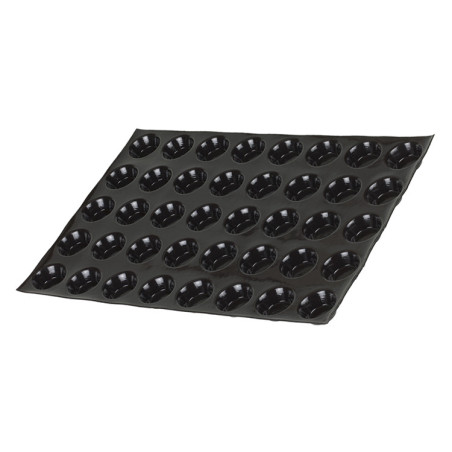Moule à Tartelettes Creuses Evasées - 40 Empreintes - ⌀ 58 mm, fabriqué en silicone avec un format de plaque adapté à la production en série. Il offre une souplesse, un maintien et une anti-adhérence optimale grâce à sa forme en tricot de verre recouvert de plusieurs couches de silicone.