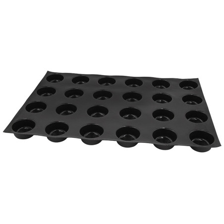 La qualité de ce moule ne se limite pas à sa facilité d'utilisation. Il est également compatible avec tous les types de fours, offrant ainsi une grande polyvalence. De plus, sa forme ronde et ses 24 empreintes de 66 mm de diamètre le rendent idéal pour la production en série de pâtisseries et de desserts.