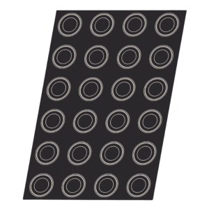 Moule Ronds Charmants - 24 Empreintes - ⌀ 66 mm, fabriqué en silicone gris. Doté d'une grande flexibilité et anti-adhérence, il assure un démoulage facile sans graissage préalable. Compatible avec tous les types de fours et adapté à la production en série, il offre une cuisson et coloration homogènes.
