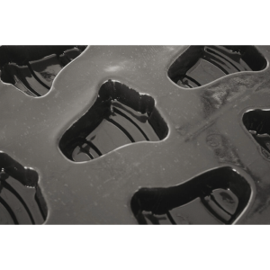 Avec un format de plaque de 600mm de longueur, 400mm de profondeur et 29mm de hauteur, ce moule est parfaitement adapté à une utilisation intensive. En effet, chaque moule peut réaliser entre 2000 à 3000 cuissons, en fonction des références utilisées.