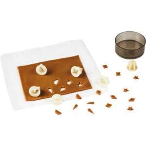 La boîte contient une variété de 12 formes différentes, allant du cœur à la virgule, offrant ainsi une grande flexibilité dans la présentation de vos plats. Chaque découpoir est marqué, ce qui permet une identification rapide et efficace lors de la préparation. L'ensemble est également adapté au passage au lave-vaisselle, pour un nettoyage sans effort.