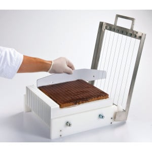 La Mini Guitare avec Bras 22 mm - 445 x 335 mm est une solution de découpe optimale pour les établissements de restauration qui cherchent à optimiser leur production. Grâce à sa conception compacte, elle offre une solution peu encombrante pour la découpe de bandes, carrés ou rectangles de diverses préparations.