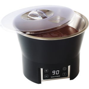 La Trempeuse à Chocolat Caloribac - 0,35 L de la marque Matfer est un outil performant et indispensable pour toute cuisine professionnelle. Dotée d'une capacité de 0,35 litres, cette trempeuse est conçue pour la fonte et le maintien en température de chocolat fondant, nappage, sauce, gelée, et bien d'autres.