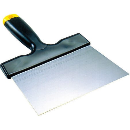 Cette palette est spécialement conçue pour garnir et racler les plaques de moules à chocolat. Grâce à sa hauteur de lame de 100 mm, elle permet une application précise du chocolat, assurant ainsi une finition soignée et professionnelle à chaque utilisation.