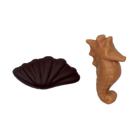 Cette plaque à chocolat présente une forme multiple qui permet de réaliser des coquillages et des hippocampes en chocolat. Elle comprend 8 emplacements pour les coquillages et 8 emplacements pour les hippocampes. Cela permet de créer des fritures de mer variées qui raviront vos clients et apporteront une touche originale à vos créations.
