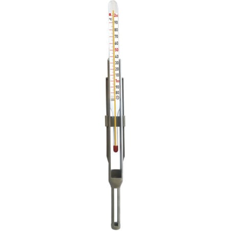 Le Thermomètre Confiseur et Friture - Gaine Polyamide se distingue par sa grande lisibilité et sa fabrication robuste. Son corps en verre, contenant un liquide rouge, garantit une mesure précise de la température, essentielle pour la réussite de vos préparations culinaires. La gaine en polyamide gris alimentaire offre une protection supplémentaire au thermomètre, tout en respectant les normes alimentaires.