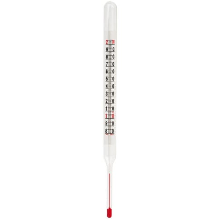 Le Thermomètre Confiseur et Friture - Sans Gaine est un outil indispensable pour toute cuisine professionnelle. Avec son corps en verre transparent, il offre une grande lisibilité, permettant une lecture facile et précise des températures. Son liquide rouge permet une lecture précise, essentielle pour la préparation de confiseries ou de fritures.