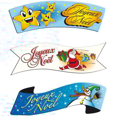 Plaque Joyeux Noël - Lot de 24, léger et facile à manipuler avec un poids de seulement 0,016 kg. Ces décors comestibles de la marque matfer mesurent 94 mm de long et 30 mm de profondeur.