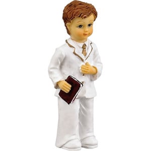 Chaque pièce du lot est soigneusement conçue pour capturer l'essence de la communion. Le communiant est représenté en prière avec un missel, créant un symbolisme fort pour cet événement sacré. Chaque détail est finement sculpté, allant des plis du vêtement du communiant au missel qu'il tient dans ses mains.
