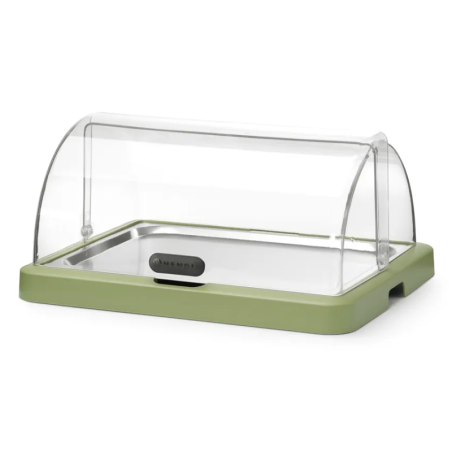 La Vitrine Buffet à Couvercle Coulissant UNIQ - Vert allie esthétique moderne et fonctionnalité pratique pour tout professionnel de la restauration. Avec sa structure en plastique ABS vert robuste et son couvercle transparent en PET, elle assure une excellente visibilité des produits tout en les conservant au frais grâce à ses éléments réfrigérants intégrés. Des plateaux à rebord sécurisent le couvercle et facilitent l’accès. Idéale pour présenter avec style des en-cas dans les buffets d’hôtels ou autres environnements de restauration, cette vitrine légère et compacte est également facile à assembler et à démonter, optimisant ainsi l’espace et l’efficacité du service.