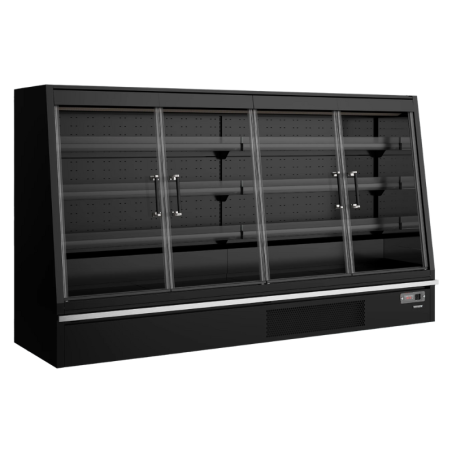 Caractéristiques techniques : Avec des dimensions généreuses de 2580 mm de longueur, 740 mm de profondeur, et une hauteur de 1500 mm, la vitrine possède un volume de 720 litres, permettant un stockage conséquent. Le système de refroidissement ventilé assure une température constante, variant de -1 °C à 5 °C, gage de conservation optimale des produits sensibles tels que les produits frais et les boissons. La finition extérieure noire, élégante et moderne, se marie parfaitement à tout type de décor commercial.