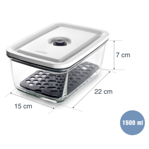 Doté d'un couvercle équipé d'une double fermeture hermétique, ce récipient garantit une conservation des aliments à l'abri de l'air et des contaminants. La présence d'une valve à vide, compatible avec une pompe à vide Smart (réf. : 69690), permet de prolonger la durée de vie des aliments frais et des préparations, en préservant leurs saveurs et nutriments essentiels.