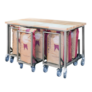 Dimensions pratiques de 400 x 740 x 820 mm et un poids de 11 kg permettent une manipulation aisée dans les espaces restreints des cuisines professionnelles. La capacité de transporter jusqu'à 160 kg répartis en quatre sacs de farine de 40 kg chacun assure une grande capacité de stockage et une réduction significative des déplacements nécessaires pour le personnel, optimisant ainsi le temps et les efforts.