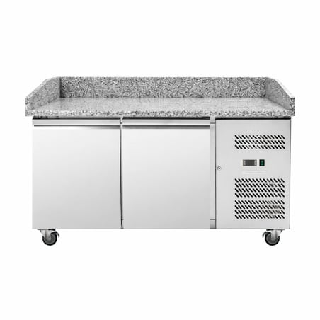 Doté de deux portes battantes et un volume interne de 294 litres, ce modèle offre un espace de rangement substantiel pour les ingrédients essentiels à portée de main. Les dimensions généreuses des plaques/grilles (630 x 403 mm) permettent une utilisation maximale de l'espace de stockage accessible. De plus, ce meuble est équipé d'un système de refroidissement ventilé, garantissant une distribution homogène de la température de -2°C à 8°C, ce qui est idéal pour conserver la fraîcheur des différents composants de vos pizzas.