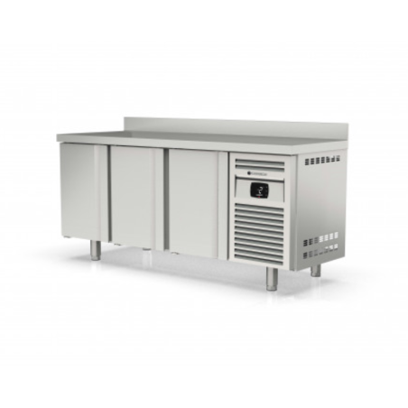 Outre ses fonctionnalités de plonge, le meuble est équipé d’un réfrigérateur positif 600 SNACK de haute performance. Son système de réfrigération, avec un thermostat électronique et un afficheur digital, garantit un contrôle précis de la température de -2° à +8°C, adapté à la conservation optimale des aliments. La capacité de 410 litres et trois portes pleines permettent un stockage conséquent et facilement accessible, optimisant ainsi l’espace dans la cuisine.