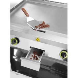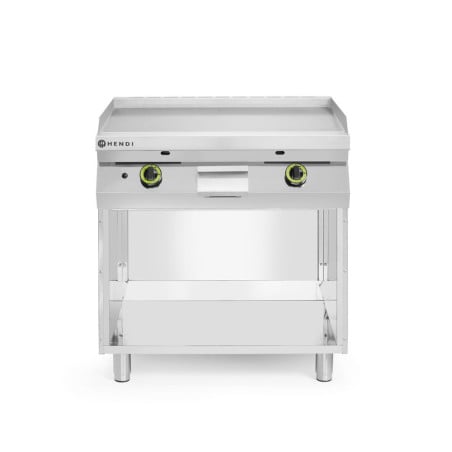 La plaque de cuisson mesure 800 mm de longueur, 700 mm de profondeur et 900 mm de hauteur. Le poids de 98 kg témoigne de sa construction solide et durable. La plaque lisse facilite la cuisson uniforme des aliments et simplifie le nettoyage.